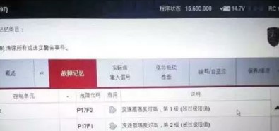 故障診斷:接車發(fā)現(xiàn)儀表確實有變速器故障燈點亮,用PIWIS進行檢測發(fā)現(xiàn)故障碼如圖1所示。