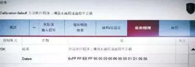 但故障碼均為偶發(fā)故障,清除后再次進行路試。當(dāng)路試進行大約15km 后故障再次出現(xiàn),返廠進行檢測,故障碼沒有變化,初步懷疑是變速器的散熱不好造成溫度過高。檢查發(fā)動機的散熱和變速器油水散熱器都在正常范圍內(nèi),嘗試更換變速器油后試車,故障沒有排除。根據(jù)電路圖檢查變速器溫度傳感器的線路均正常,查閱相關(guān)維修資料得知,此款PDK變速器的油溫傳感器故障率比較高,更換后按照原廠手冊要求對PDK 控制單元進行編碼、校準工作。但是校準卻無法成功進行,并報如圖2 所示故障。