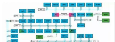 故障碼太多,況且故障現(xiàn)象又不出現(xiàn),一時(shí)不能確定故障范圍。首先拆掉右前側(cè)地毯,檢查了與故障碼相關(guān)控制模塊的CAN線(xiàn)分配器,未發(fā)現(xiàn)異常。檢查蓄電池兩個(gè)極樁,未發(fā)現(xiàn)松動(dòng),故障排除一時(shí)沒(méi)有了方向。因?yàn)槭莿傎I(mǎi)了2天的新車(chē),某個(gè)控制模塊損壞或者是線(xiàn)束磨損的可能性都是非常小的。況且在低速時(shí)故障現(xiàn)象又不會(huì)出現(xiàn),如果逐個(gè)斷開(kāi)控制模塊去試車(chē),就需要太長(zhǎng)時(shí)間,客戶(hù)也不一定能夠接受。只好從故障碼中尋找突破口。從故障碼中看出,只有底盤(pán)CAN報(bào)了總線(xiàn)關(guān)閉的故障碼,其他控制模塊都是報(bào)通信存在故障,于是準(zhǔn)備從底盤(pán)CAN(CAN E)上入手檢查。
