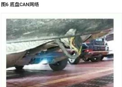 由于CAN分配器已經(jīng)檢查過(guò),于是準(zhǔn)備檢查CAN E上相連的控制模塊(如圖6所示),當(dāng)檢查底盤(pán)上的部件時(shí),發(fā)現(xiàn)了問(wèn)題所在,發(fā)現(xiàn)左側(cè)智能雷達(dá)傳感器的線(xiàn)束處于排氣管口(如圖7所示),由于尾氣溫度較高,把線(xiàn)束外面的絕緣側(cè)都燒化連在一起。本來(lái)雷達(dá)傳感器線(xiàn)束是在保險(xiǎn)杠里面固定的,估計(jì)是新車(chē)出廠(chǎng)時(shí)裝配不到位,造成線(xiàn)束受損。把線(xiàn)束重新包扎后,清除故障碼,試車(chē)一切正常。