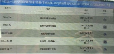 6.出現(xiàn)以下,制動液壓力傳,橫向加速度,偏航率速度,縱向加速度傳感器,依次點(diǎn)擊進(jìn)入按操作提示點(diǎn)擊復(fù)位,就可以操作成功