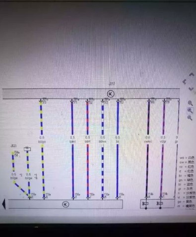 當(dāng)檢查到變速箱控制單元T81a/72到多功能開(kāi)關(guān)T10e/9時(shí)有斷路現(xiàn)象,檢查線路有碰撞點(diǎn),剝開(kāi)接好,D檔顯示正常,試車油門到4000轉(zhuǎn)只能到D3檔100邁,正常應(yīng)是D6檔——在120邁以上。查看變速箱數(shù)據(jù)流,輸入和輸出轉(zhuǎn)速均為0,更換輸入和輸出轉(zhuǎn)速傳感器G195,G182故障依舊,此轉(zhuǎn)速傳感器和車速傳感器一樣,均為脈沖式傳感器,一根線電壓為12伏,另一根電壓根據(jù)轉(zhuǎn)速不同在0~12伏之間跳動(dòng),檢查供電電壓為11.5伏。啟動(dòng)車掛D檔在舉升機(jī)上行駛,輸出電壓均為0,檢查傳感器到變速箱控制單元J217線路正常,無(wú)短路,斷路和互聯(lián)現(xiàn)象。檢查變速箱處插頭T14b有接觸不良,開(kāi)口過(guò)大現(xiàn)象,處理試車輸入輸出轉(zhuǎn)速均正常,但故障依舊,說(shuō)明此故障與輸入輸出轉(zhuǎn)速無(wú)關(guān)。自此,維修陷入了僵局。。。