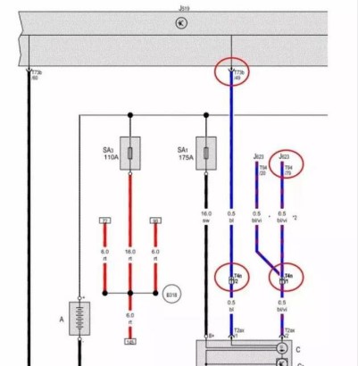 3、 檢查T(mén)4n及T2ax接插件正常, T2ax/1到BCM的T73b/49線束電阻及波形正常,T2ax/2到發(fā)動(dòng)機(jī)T94/79針腳線束電阻及波形正常;