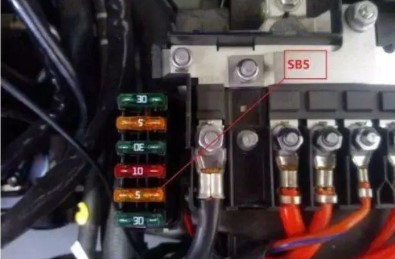 5、 檢查BCM供電線路,發(fā)現(xiàn)SB5保險(xiǎn)絲插座開(kāi)口過(guò)大(見(jiàn)下圖),修復(fù)保險(xiǎn)絲插座后故障解決。
