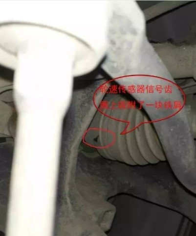 圖5左后輪速傳感器的信號(hào)齒圈上吸附著一片鐵屑