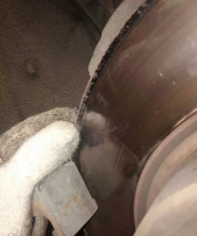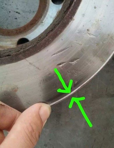 比如今天這輛車,行駛里程是15W公里,在更換剎車片的時候就要注意了,剎車盤一般都會磨的比較深,剎車盤內(nèi)、外圈的邊緣會有一個臺階。因為剎車片和剎車盤的外圈不是重合的,會有1mm的距離。