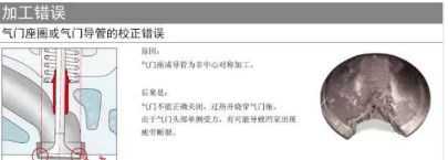氣門座圈表面粗糙,加工精度不合格,座圈的過盈量選配不當(dāng)造成松曠,選材不當(dāng)遇熱后變形過大,或氣門座的鑲配工藝不合要求。處理方法:按照裝配工藝要求重新鑲配氣門座,上端面與體平面齊平,高出部分要修平。