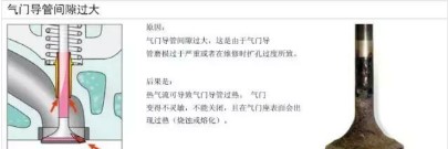 間隙過大,會使氣門升程不足,引起進(jìn)氣不充分,排氣不徹底,并出現(xiàn)異響。