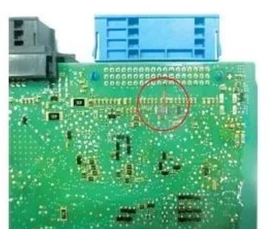 測量左側(cè)油位傳感器供電正常,搭鐵也是斷路狀態(tài), 測量燃油泵端子供電和搭鐵均正常。由上述電路圖可知,油位傳感器是由接線盒電子裝置(JBE)監(jiān)控,JBE為傳感器提供供電,傳感器又在JBE內(nèi)部搭鐵。接下來在接線盒電子裝置(JBE)的插頭X14271(藍色)處連接適配器繼續(xù)測量, 結(jié)果顯示, 從油位傳感器插頭到JBE 插頭的線束導(dǎo)通良好,而JBE插頭X14271的7號端子與9號端子與搭鐵仍不導(dǎo)通。說明油位傳感器的搭鐵線在接線盒電子裝置(JBE)內(nèi)部斷路。