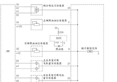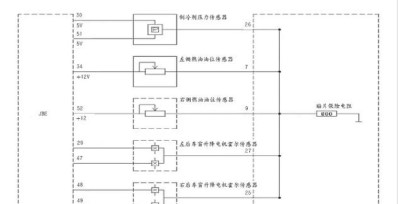 1.制冷劑壓力傳感器,燃油箱左側(cè)油位傳感器,燃油箱右側(cè)油位傳感器以及駕駛員側(cè)后部車窗升降電機的霍爾傳感器,前乘客側(cè)后部車窗升降電機的霍爾傳感器,以上傳感器的搭鐵線在JBE內(nèi)部交匯于一點,并通過一個0Ω的貼片保險電阻搭鐵。