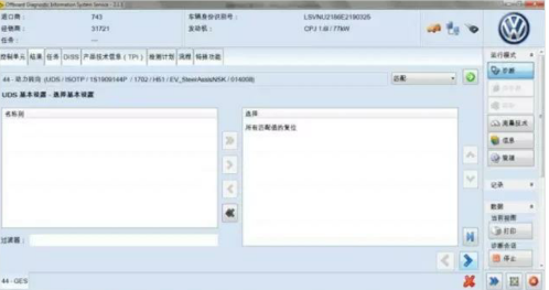 2. 再次進(jìn)入“44-動(dòng)力轉(zhuǎn)向”,進(jìn)行“控制單元自診斷”,選擇“基本設(shè)置”,將“所有匹配值的復(fù)位”選入右側(cè)選擇框,點(diǎn)擊進(jìn)入下一步。