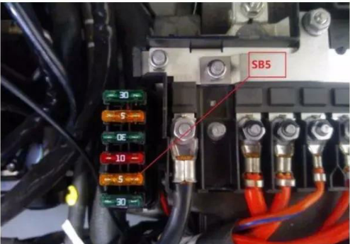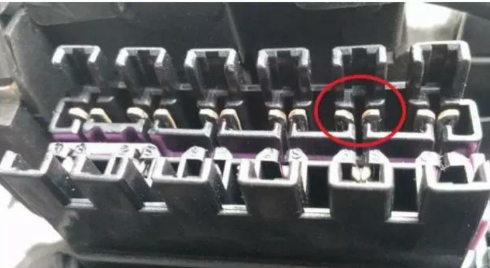 5、 檢查BCM供電線路,發(fā)現(xiàn)SB5保險(xiǎn)絲插座開(kāi)口過(guò)大(見(jiàn)下圖),修復(fù)保險(xiǎn)絲插座后故障解決。