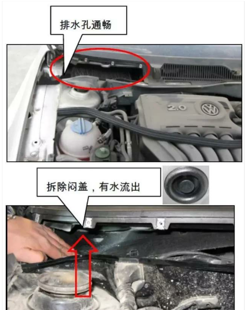 1、拆除花粉過(guò)濾器,檢查發(fā)動(dòng)機(jī)艙排水板排水孔通暢;