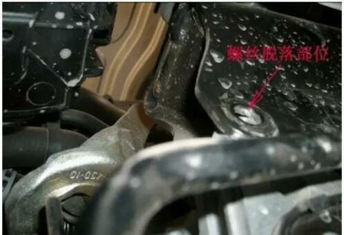 發(fā)現(xiàn)變速箱位置出現(xiàn)偏差,檢查變速箱左側(cè)支撐螺栓脫落。
