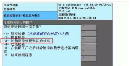 朗逸輪胎氣壓監(jiān)測(cè)系統(tǒng)警告燈亮(01325 RAKA回復(fù)到初始狀態(tài))