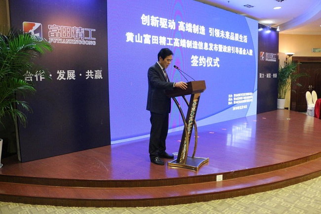 當(dāng)天下午,在安徽省黃山市黃山高爾夫大酒店隆重舉行了該公司機(jī)械制造信息發(fā)布暨政府引導(dǎo)資金入股簽約儀式。出席嘉賓有: